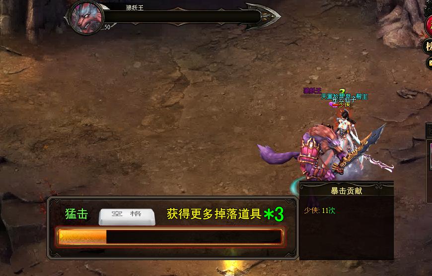 杀死BOSS后狂按空格键可以暴扁BOSS,暴扁次数越高,掉落的奖励越丰富。